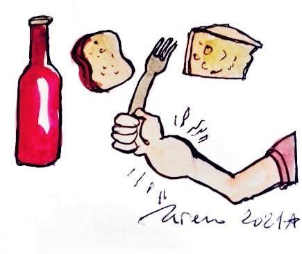 Formaggio, pane bianco e vino sincero, fanno il polso duro