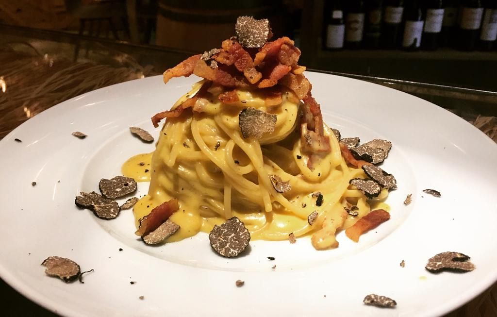 Daniele Maragnani, chef di MiVà, ristorante romano situato nel quartiere Prati, ha reso la carbonara uno dei piatti simbolo della sua offerta culinaria. Una versione che si distingue per ricchezza e generosità di ingredienti: si utilizzano sia tuorli che uova intere, rigorosamente biologiche. E ancora, tartufo nero di alta qualità e guanciale artigianale. A rendere il tutto ancora più eclettico la particolarità di sfumare il grasso del guanciale con del vino bianco per poi aggiungere in secondo momento gli spaghetti e farli risottare fino a completamento di cottura. Come tocco finale, una generosa spolverata di pepe battuto al momento.
