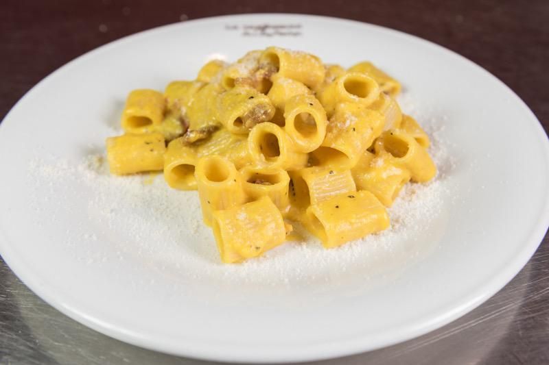 Un piccolo locale nel cuore di Trastevere dove sono le uova a rappresentare la colonna portante di tutti i piatti presenti nel menu. Da Eggs la carbonara della chef Barbara Agosti è una cosa seria, tanto che si può scegliere tra ben 13 versioni differenti: dalla classica, a quella preparata con prodotti stagionali (cipolle di Tropea caramellate, fiori di zucca, broccoli o carciofi), passando per le varianti con il petto d’anatra o con gamberi agrumati e pistacchio. Ma la rivisitazione senz’altro più originale e contemporanea è la carbonara impanata e fritta su stecco: gli spaghetti vengono cotti al dente, tuffati nella farcia di uova e formaggio e sistemati in appositi stampi da gelato. Una volta congelati, vengono passati nel rosso d’uovo, nel pangrattato e fritti in abbondante olio di arachidi. Anche qui non mancano le varianti: si può scegliere tra il gusto classico, al tartufo nero o con n’duja e stracciatella.