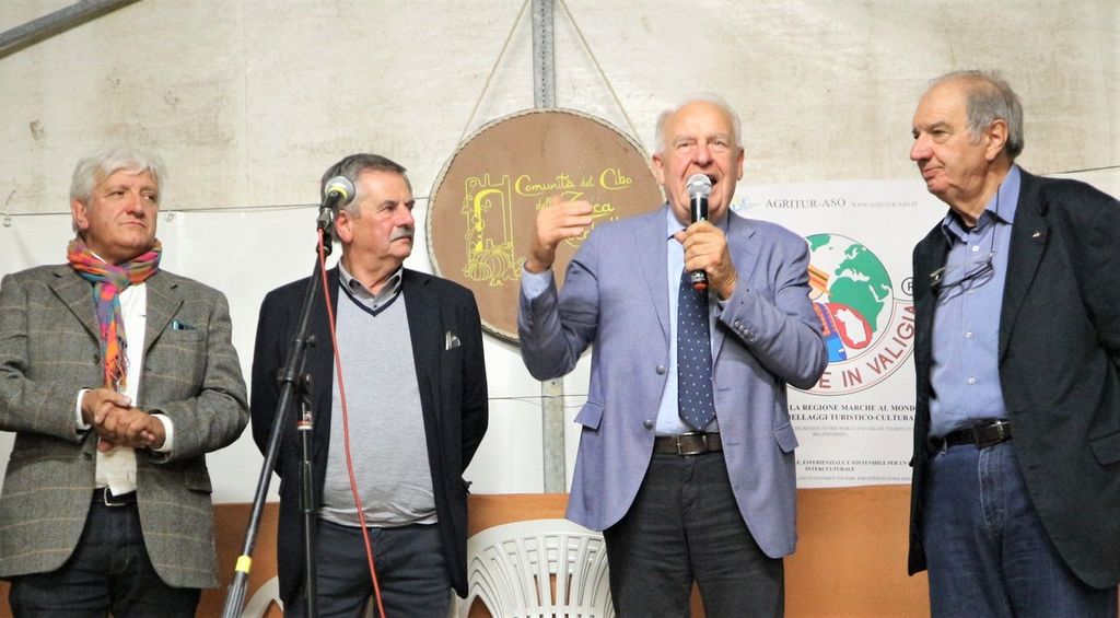 Fra gli applausi di tutti i partecipanti alla serata è stato accolto l’appello a costruire un ponte fra le due comunità, condiviso da Roberto Ferretti e Gianpietro Meinero, responsabile della comunità della Zucca di Rocchetta di Cengio. Una iniziativa turistico culturale finalizzata ad una conoscenza delle rispettive identità territoriali in un clima di grande amicizia e accoglienza. L’idea di un turismo relazionale integrato apre una nuova prospettiva di sviluppo per la valle Bormida, che come i piccoli borghi della Valdaso non potrà mai puntare su un turismo di massa, ma su importanti e significative esperienze relazionali.