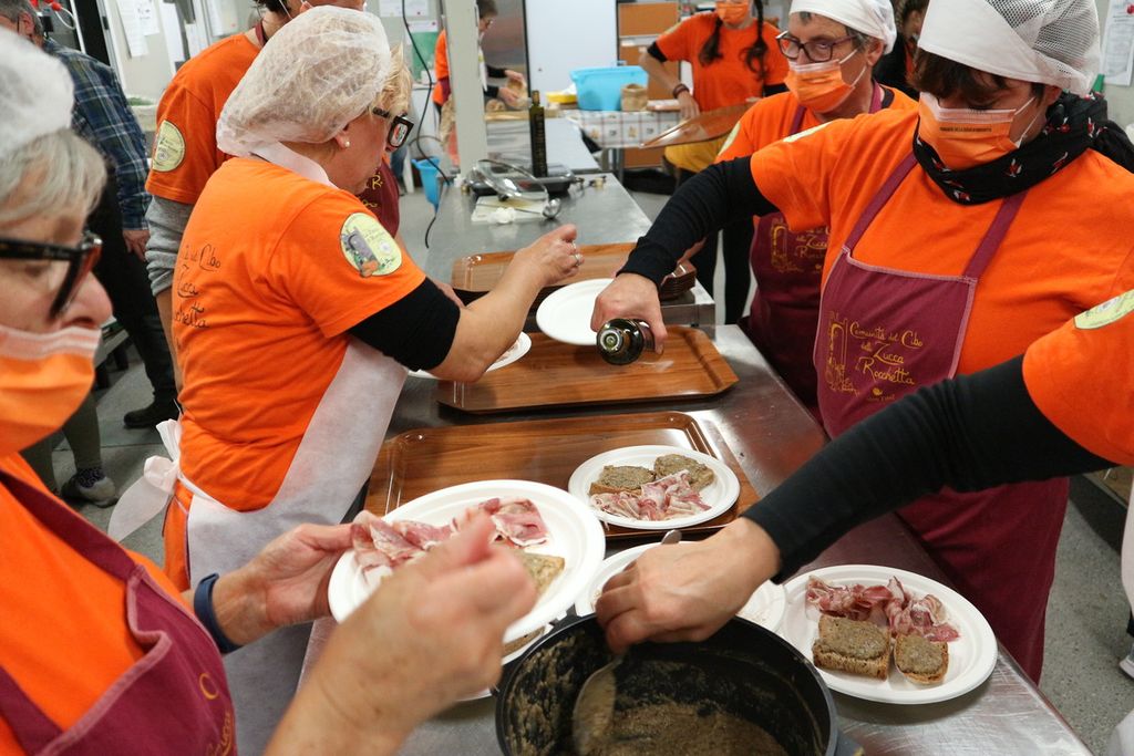 Il “gemellaggio” fra le due comunità è stato accompagnato da una cena dedicata alla sostenibilità alimentare. Un momento per riflettere sulla correlazione tra cibo, agricoltura e turismo sostenibile, con prodotti a basso impatto ambientale che contribuiscono alla sicurezza alimentare e nutrizionale nonché a una vita sana per le generazioni presenti e future. L’occasione per conoscere prodotti d’eccellenza come le uova prodotte da galline felici, accompagnata dal prezioso tartufo nero della zona, salumi eccezionali come la testa in cassetta della vicina Cosseria, piccole chicche come la crema di pisello selvatico accompagnata dal pane nero e dall’olio di montagna della Valle Nervia, i deliziosi formaggi delle Langhette e fra questi la giuncata di pecora il primo prodotto De.Co. di Saliceto, vini e digestivi biologi, il dolcetto dei terrazzamenti, Presidio Slow.Food.