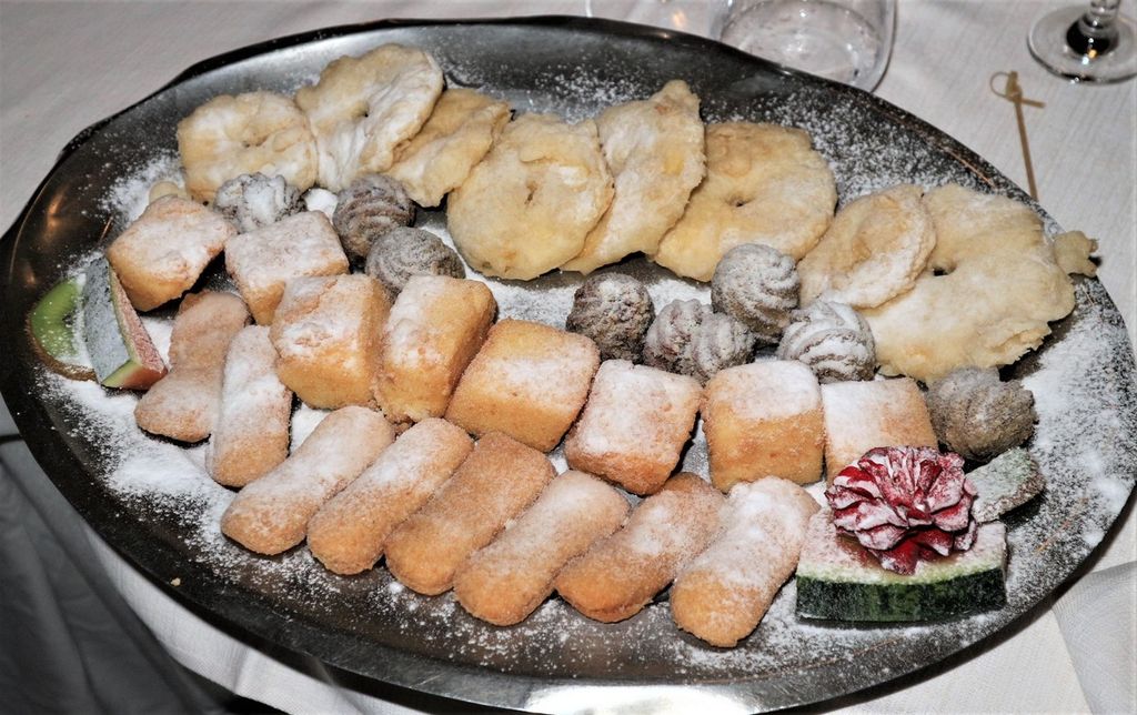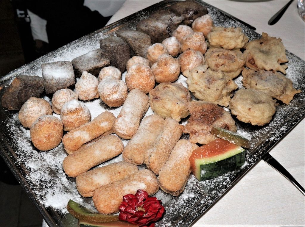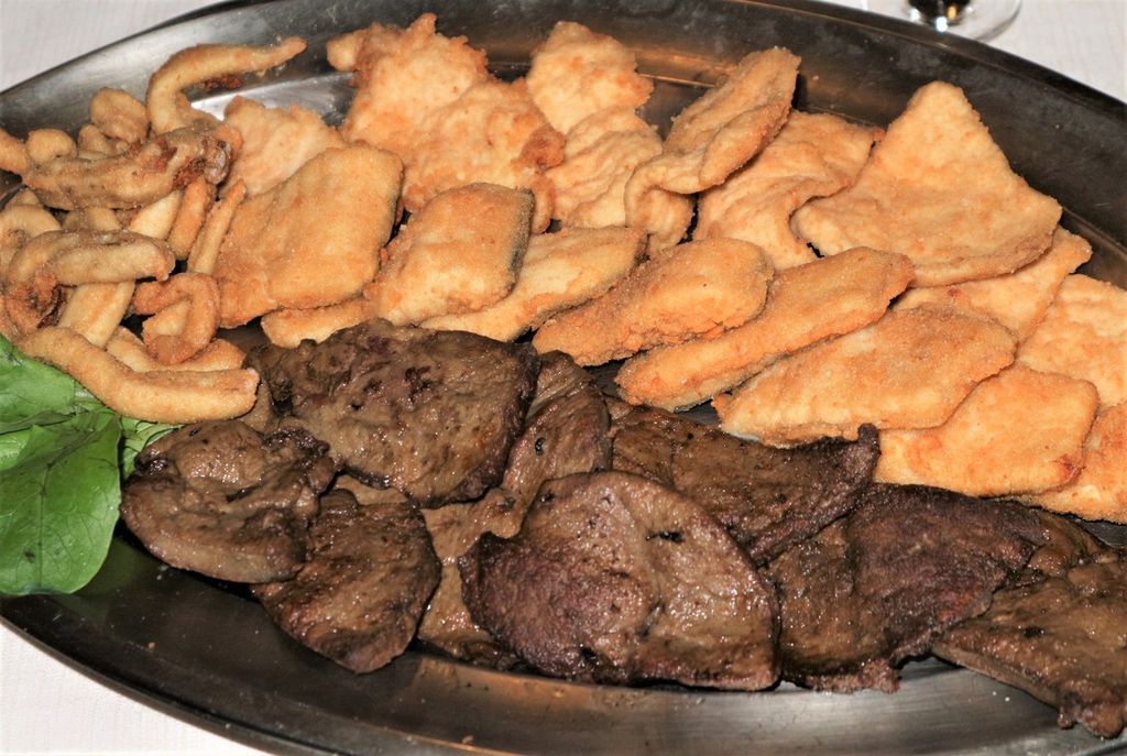 Qui viene proposto, nella versione “grande” con 25 assaggi, divisi quasi equamente tra 12 salati e 13 dolci, e rappresenta un’esperienza del gusto davvero impareggiabile. Spiccano tra i fritti salati le rane e le interiora di Vitello, insieme a ogni tipo di verdura, mentre fra i dolci da segnalare le pesche ripiene, i bignè, e il semolino al cioccolato. Se lo volete gustare pienamente è consigliabile ordinarlo come piatto unico.