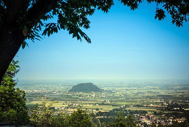 Circondato da boschi e da prati verdi, domina la valle permettendo una vista panoramica meravigliosa sulla pianura da dove si erge in lontananza la Rocca di Cavour.