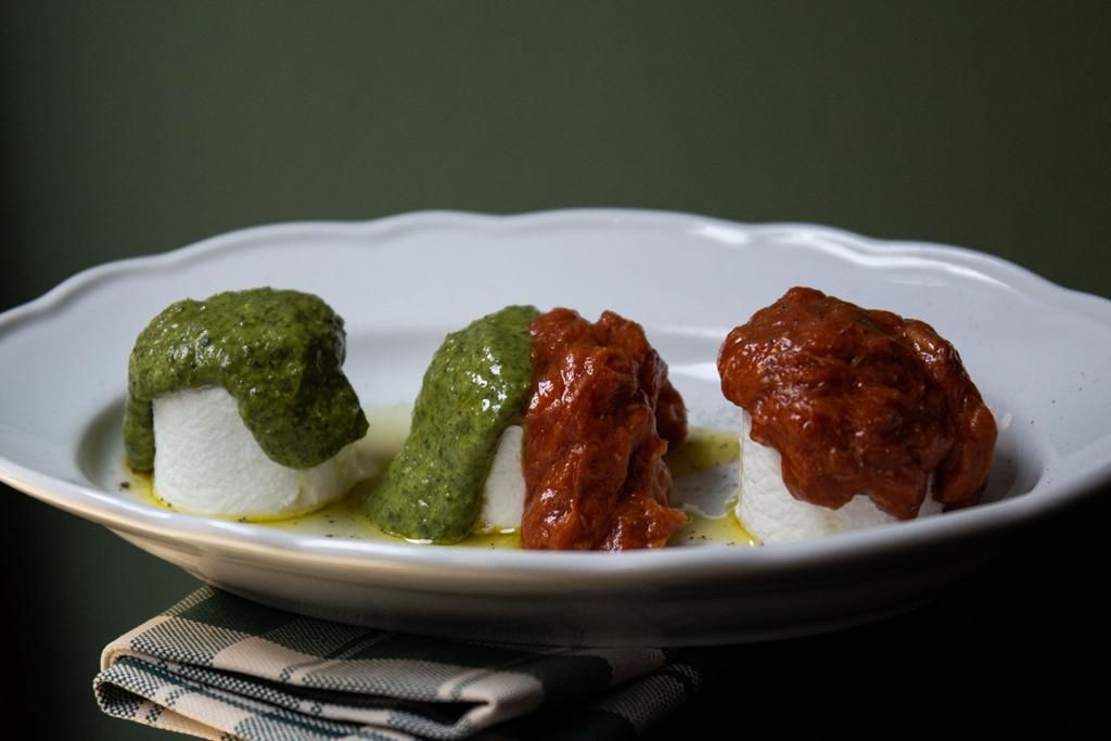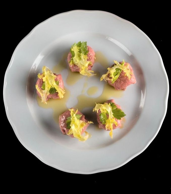 Il menù attinge ovviamente alla tradizione Piemontese, e quindi largo spazio agli antipasti: tomini al verde, salame della rosa, acciughe al verde, peperoni con bagna cauda, vitel tonnè (presentato a fagottino), tonno di coniglio, giardiniera, cipolla ripiena di salsiccia amaretti e grana.