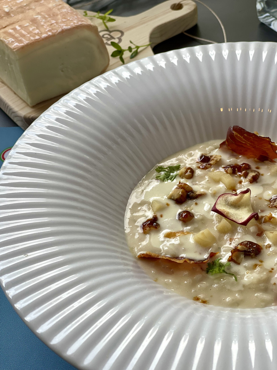 Risotto al taleggio DOP, mele, speck e noci