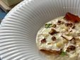 Scones con una spuma di Taleggio D.O.P. e marmellata di funghi;