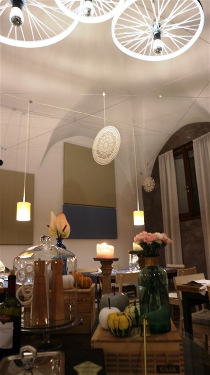 All'interno la sala da pranzo è molto curata ed accogliente, luci e arredi moderni, con candele ed oggetti particolari, rendono l'ambiente raffinato ed elegante. Il servizio è affidato a Chiara, sempre sorridente e gentile, mentre la cucina è il regno di Riccardo.