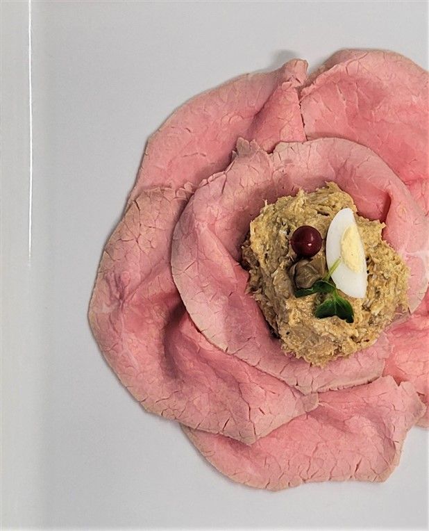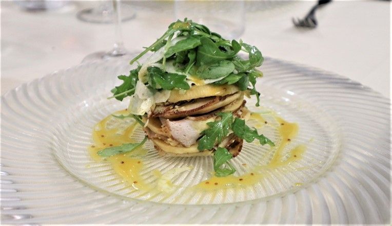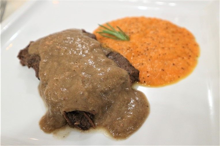 Così accanto adantipasti tipici locali come il vitello tonnato in versione “ancienne” (senza maionese), carne di Fassona Battuta, trippa di Moncalieri e sformato di cardi e topinambur con fonduta possiamo trovare una interessante millefoglie di maialino o flan di verdure di stagione.