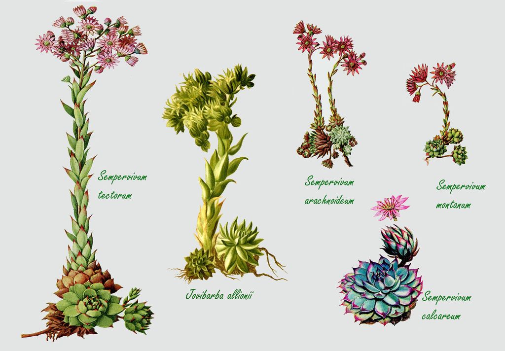Alle quattro specie elencate si aggiunge lo Jovibarba allionii (Semprevivo di Allioni), piccolo genere parente prossimo dei semprevivi dai quali si differenzia per i fiori campanulati a sei petali, di colore giallo-verde. Ai Semprevivi è stato attribuito, dall’emblematica floreale, il significato di trionfo e di vittoria sui nemici, nonché quello di protezione, legato certamente al loro antico impiego di parafulmine vegetale. Sono per questo considerati simbolo di forza, di resistenza ed anche di un legame indistruttibile d’amicizia. Queste piante, un po’ come la fenice, riescono a risorgere dalle ceneri e iniziare una nuova vita.