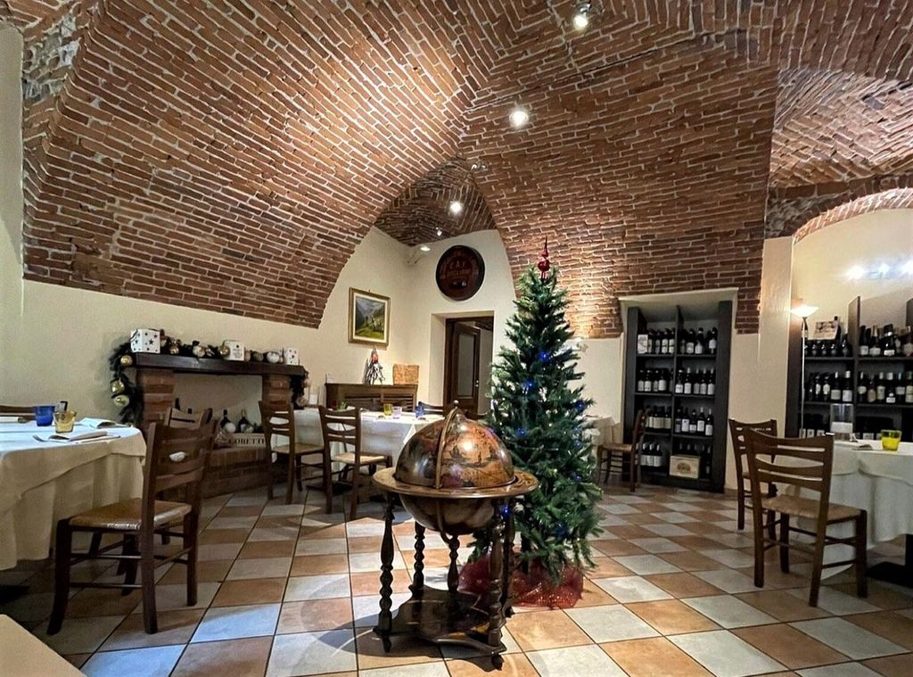 Il ristorante ha due belle e ampie sale, una con soffitto a volte a mattoni e l’altra con cassettoni in legno che creano subito un ambiente elegante e raccolto.
