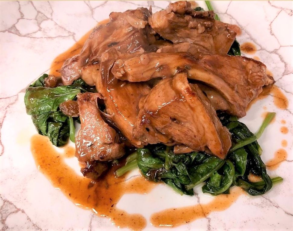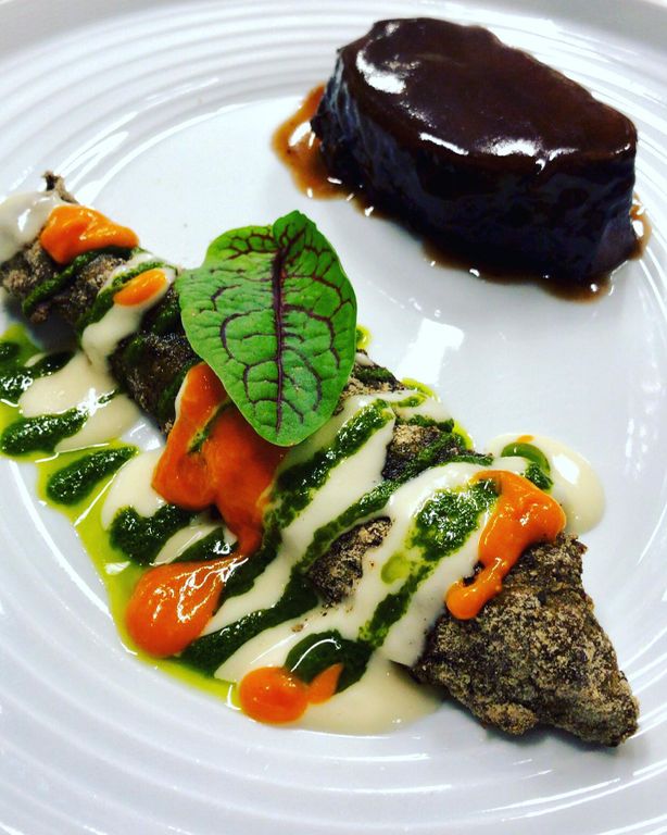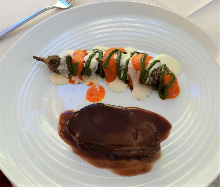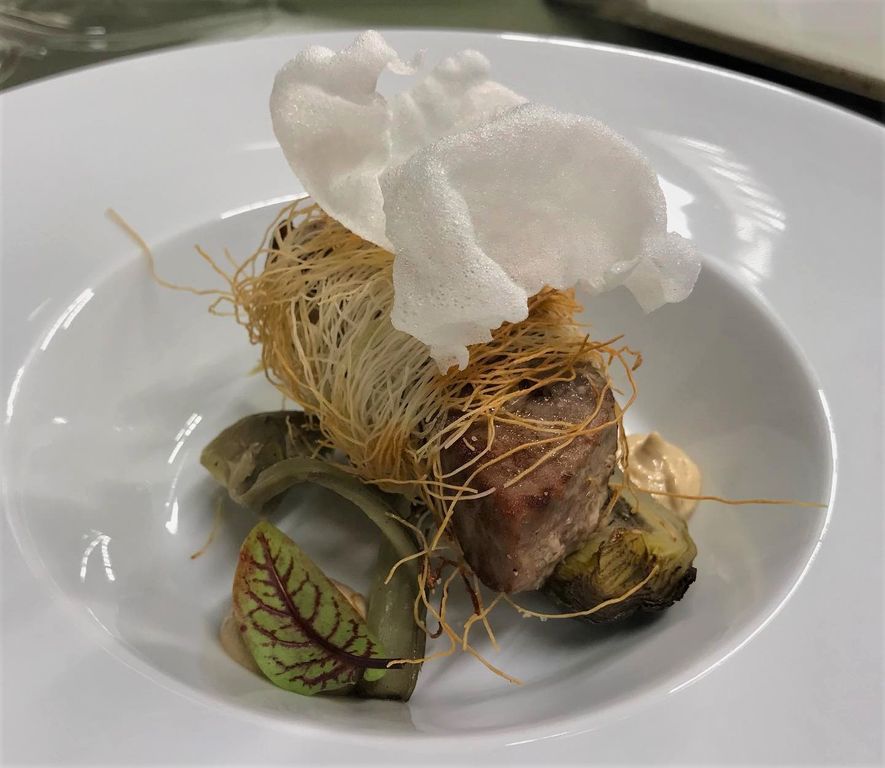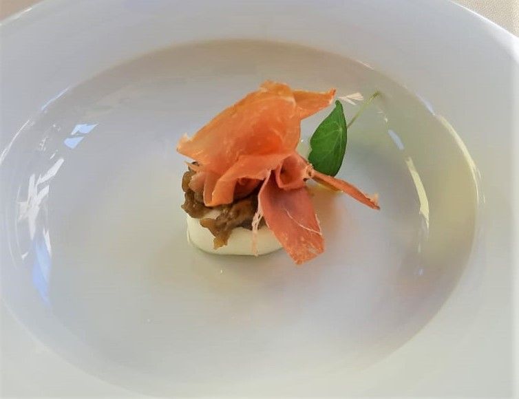 Il secondo menù degustazione “4 ciance” prevede sempre l’amuse-bouche, come antipasto propone il barbajuan di seirass e carciofi con bietoline e zabaione salato, come primo i plin di prosciutto crudo e mortadella, riduzione di prosciutto crudo e besciamella al parmigiano e a seguire la tagliata di vitello e salsa al marsala, e infine il dolce a scelta.