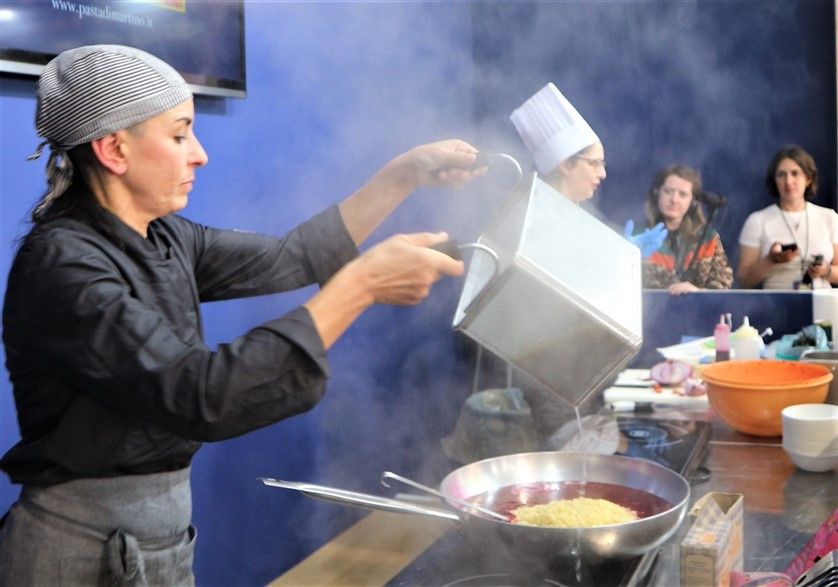 Fra le tante iniziative, cui ha partecipato, ha riscosso un grande successo il suo laboratorio presso lo stand della pasta De Martino di Gragnano.