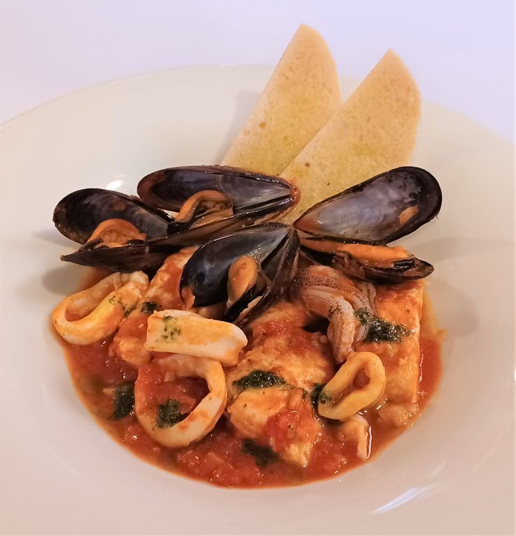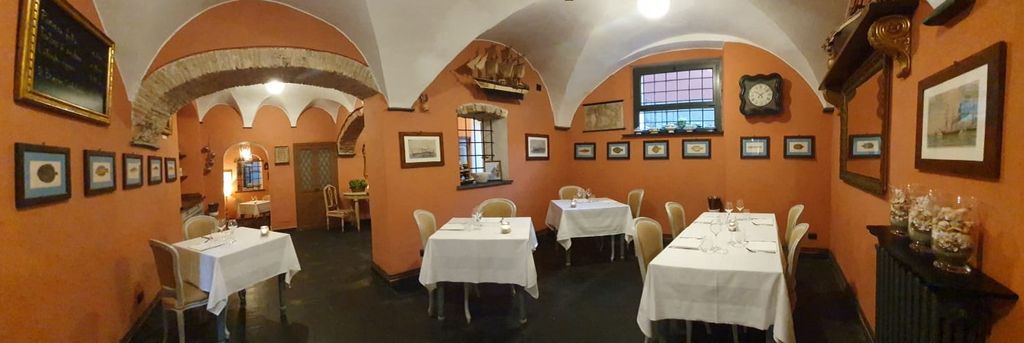 Il menù è territoriale, acciughe, stoccafisso, pescato del giorno (ma anche coniglio e Fassona), ma declinato con fantasia e sapienza e condito con ottimo extravergine. Da non perdere la terrina di coniglio con albicocche di Valleggia (in stagione) e bietole, gli gnocchi alla fonduta di pecorino sardo e nocciole, le lattughe ripiene della tradizione. Buona, con ricarichi corretti, la carta dei vini a prevalenza rivierasca.