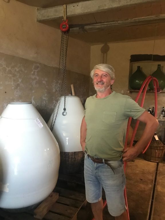 Ma la sua passione per il naturale è integrale: “quando vidi i contenitori per il vino a forma di uovo in ceramica rimasi affascinato e folgorato; mi convinsi che quel materiale e quelle forme potevano contenere il vino mantenendo inalterate tutte le sue caratteristiche. Ho iniziato così a produrre un vino affinato in botti di ceramica seguendo metodi assolutamente naturali.
