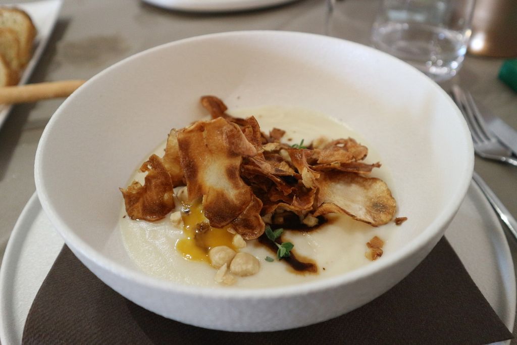 Gli abbinamenti particolari e originali esaltano gli ingredienti, tutti di altissima qualità, cucinati alla perfezione e presentati con cura, come il “Gnocchetto di patate con calamaretto, cavolfiore, pancetta affumicata e mandorle”