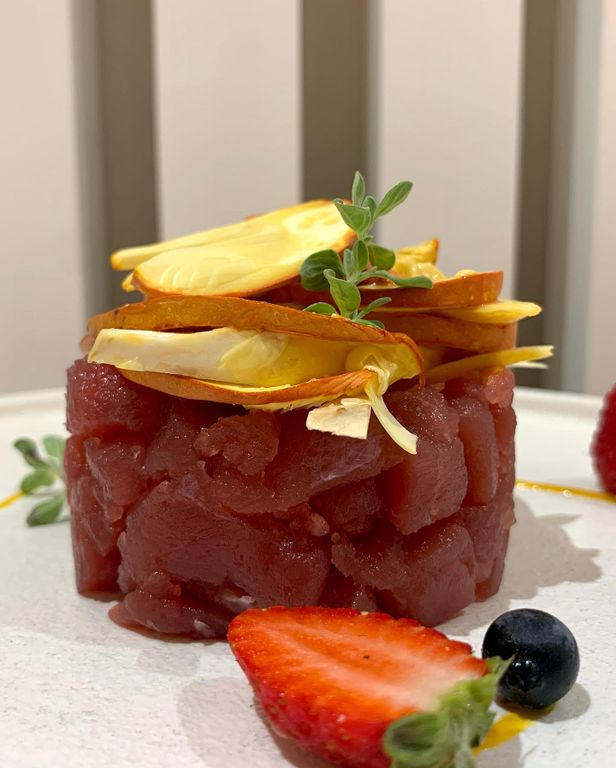 Tra i primi citiamo i ravioli al plin al cacao ripieni di fonduta, nocciola piemonte igp e tartufo nero (21 euro) oppure i tagliolini ai 30 tuorli con acciuga, cime di rapa, prescinseua e crumble di focaccia (17 euro) o ancora il gnocchetto di patate con gambero viola, carciofi e aria di chinotto (25 euro) Nei secondi vi invitiamo ad assaggiare le “leitùghe pinn-e in broddu” (lattughe ripiene di gallinella cotte nel loro fumetto di pesce) preparazione tradizionale del ponente ligure (19 euro), e il rombo chiodato, cavolfiore, mela impanata, arachidi salate e riduzione al vin brulé (25 euro). Dolci deliziosi della casa così come il pane e la focaccia, particolare quella al nero di seppia.