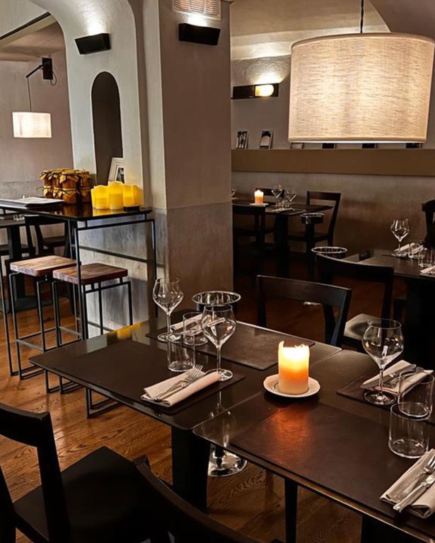 L’interno presenta un’unica sala con pavimenti in cotto e volte in pietra, elegante e moderno, con quadri colorati alle pareti. In sala Cristina accoglie con un sorriso e accompagna i clienti nella scelta dei piatti che lo chef Gianni prepara ogni giorno con prodotti freschissimi.