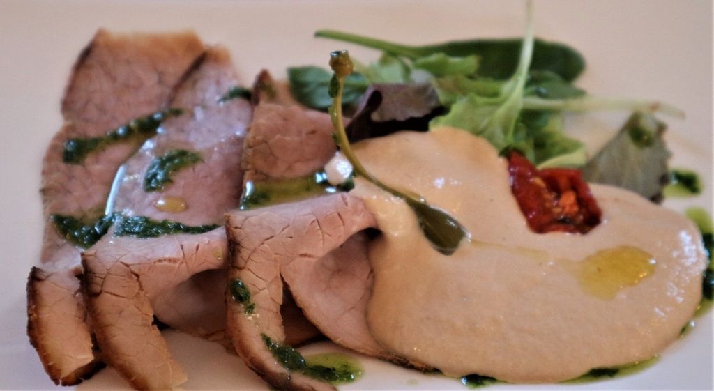 Fra gli antipasti da menzionare lo sformato di “Cardo gobbo” con fonduta di toma blu, il girello di Fassone in crosta di senape e salsa tonnata, la battuta di cruda con nocciole delle Langhe.