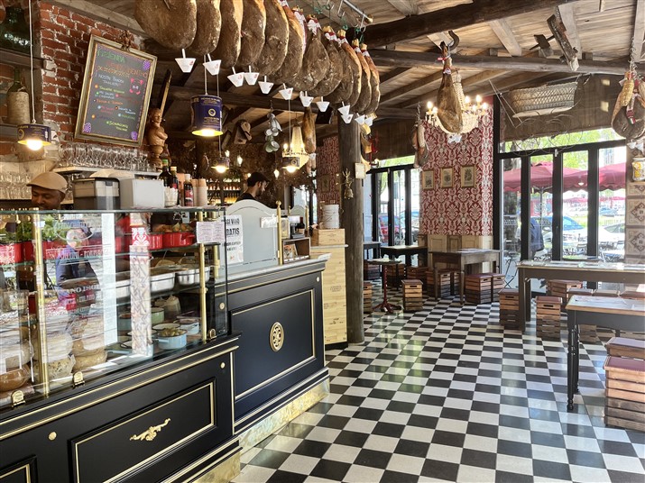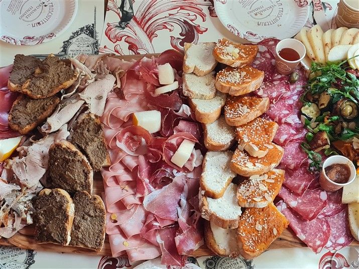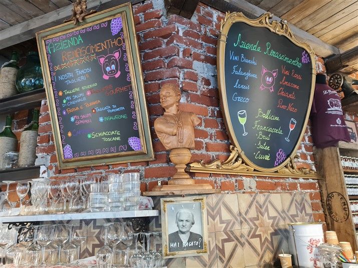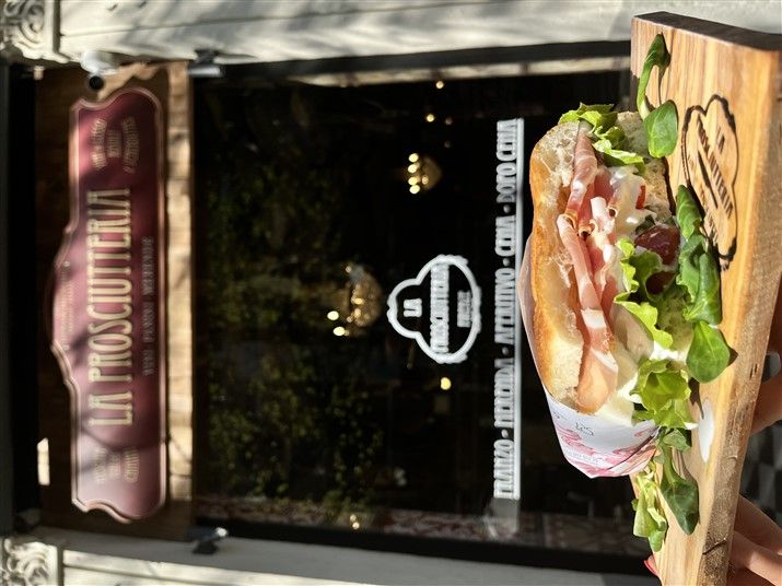 Specializzato in taglieri e porchetta rigorosamente made in Tuscany, La Prosciutteria porta a Milano la cucina popolare “fast” toscana, dai taglieri di salumi e formaggi (pecorini di varie stagionature aromatizzati, come quello alle noci o al pistacchio oppure al rosmarino o al peperoncino) alle schiacciate farcite, dai carpacci alla rinomata porchetta del Chianti cotta nel forno a legna, fino a qualche piatto caldo della tradizione come la pappa al pomodoro, da gustare insieme a vini di produzione propria quali il Chianti e Chianti Classico.