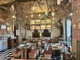 Il bancone che accoglie gli ospiti all'ingresso richiama una pensilina dei primi anni del ‘900, ed è inevitabile far correre lo sguardo sulle sedute in pelle cucite a mano e sui tavoli in vero marmo di Carrara, con un uso sapiente di colori caldi, luci soffuse e dettagli curati per immergerci in una dimensione fuori dal tempo.