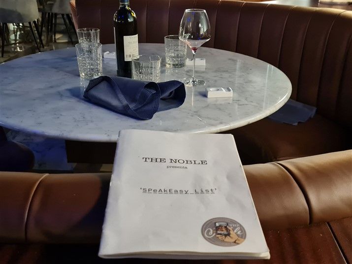 Ma il The Noble non è solo cocktail bar “speakeasy”, anche il ristorante merita una sosta per gustare i piatti della casa (realizzati sempre e solo con materie prime d'eccellenza dalla giovane ed esperta mano dello Chef Luigi Pastore) e per esplorare le offerte della cantina, con una vasta selezione di etichette da tutta Italia e qualche referenza estera, per una pausa gourmet intima e suggestiva.