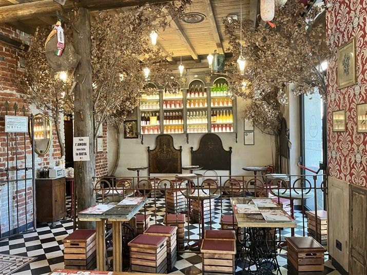 Tutti i prodotti vengono scelti accuratamente e sono 100% italiani, e come in tutti i locali del brand qui è possibile fare la spesa e portare a casa vini, conserve e tutti i prodotti degustati come se fossimo in una vecchia “bottega” di alimentari.