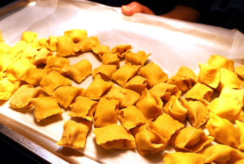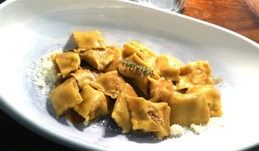 Fra i primi piatti, una gustosa selezione di piatti con prezzi compresi fra i 12 euro dei Bucatini Cacio e Pepe ed i 18 euro degli spaghetti di Gragnano con gamberoni, passando per risotti ed una particolare citazione per i ravioli del plin ripeini di congilio fatti in casa come una volta: