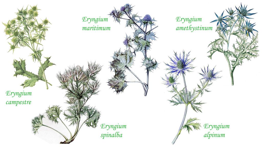 La prima documentazione sicura di una specie di Eryngium coltivata all’interno di giardini europei risale al 1596. Da documentazioni indirette, sembra comunque che alcune specie siano state coltivate ancora prima di questa data ufficiale. Allo stato attuale sono una ventina le specie che vengono coltivate per l'importanza decorativa dei capolini. Dal punto di vista morfologico si può notare che le foglie degli Eryngium sono coriacee e generalmente pungenti, solitamente solcate da nervature molto prominenti, di un verde argentato. I fiori sono raggruppati in infiorescenze a ombrello circondate alla base da un involucro formato da grandi brattee spinose. I capolini possono avere una forma sferica o cilindrica, e a seconda della specie, i singoli fiori assumono una colorazione bianca o azzurra ma anche verde o viola, con riflessi metallici. Il periodo di fioritura va da giugno a settembre.