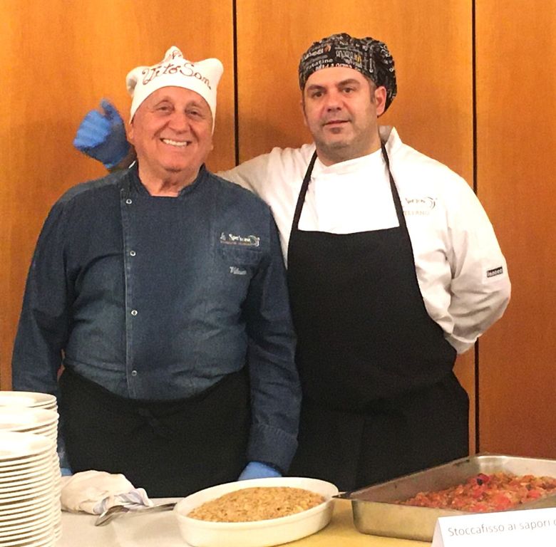 Senza naturalmente dimenticare le saporite declinazioni marchigiane di Ripatransone, Ancona, Porto Sant’Elpidio e Fermo, preparati rispettivamente dagli chef Carla Maroni, Michela Polverini, Sabrina Attanasio e Giovanni Cimadamore, Guido Gennaro. Fra le significative presenze legate al pesce che unisce la Norvegia all’Italia, da sottolineare quelle di Tiziana Agostini, prima donna in 35 anni di storia, eletta presidente della Confraternita del Baccalà alla Vicentina di Sandrigo, e di Olaf Johan Pedersen, direttore per l’Italia della Torrfisk fra Lofoten AS.