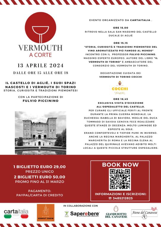 L’appuntamento che ha ottenuto il Patrocinio del Comune di Aglié, nasce da un’idea di CartaItalia, con la collaborazione di Milano Vermut Show e Saperebere.
