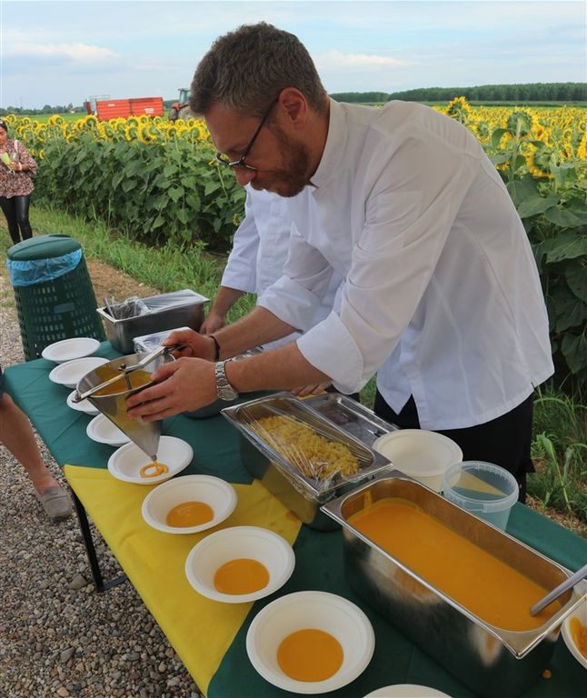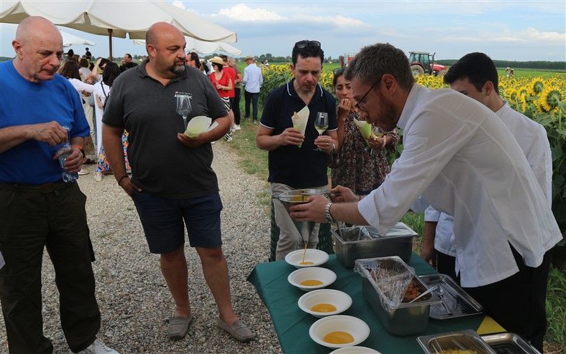 Un'esperienza sensoriale che ha permesso ai partecipanti di scoprire il mondo affascinante del riso e della sua coltivazione. Attraverso una passeggiata emozionale nei campi di riso dell'azienda agricola, in mezzo alla campagna pavese e circondati dai girasoli in fiore, è stata presentata la qualità del riso carnaroli Isos, prodotto da Andrea Bianchi.
