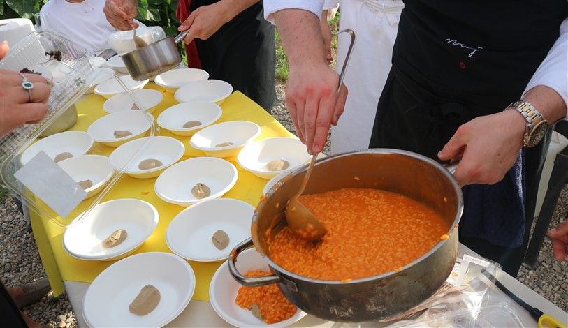 E dopo la passeggiata nella risaia, gli ospiti hanno potuto degustare il rinomato riso carnaroli Isos, un prodotto nato dalla passione di Andrea Bianchi e preparato dagli chef Federico Sgorbini e Dario Fisichella, insieme ad altri prodotti del territorio.