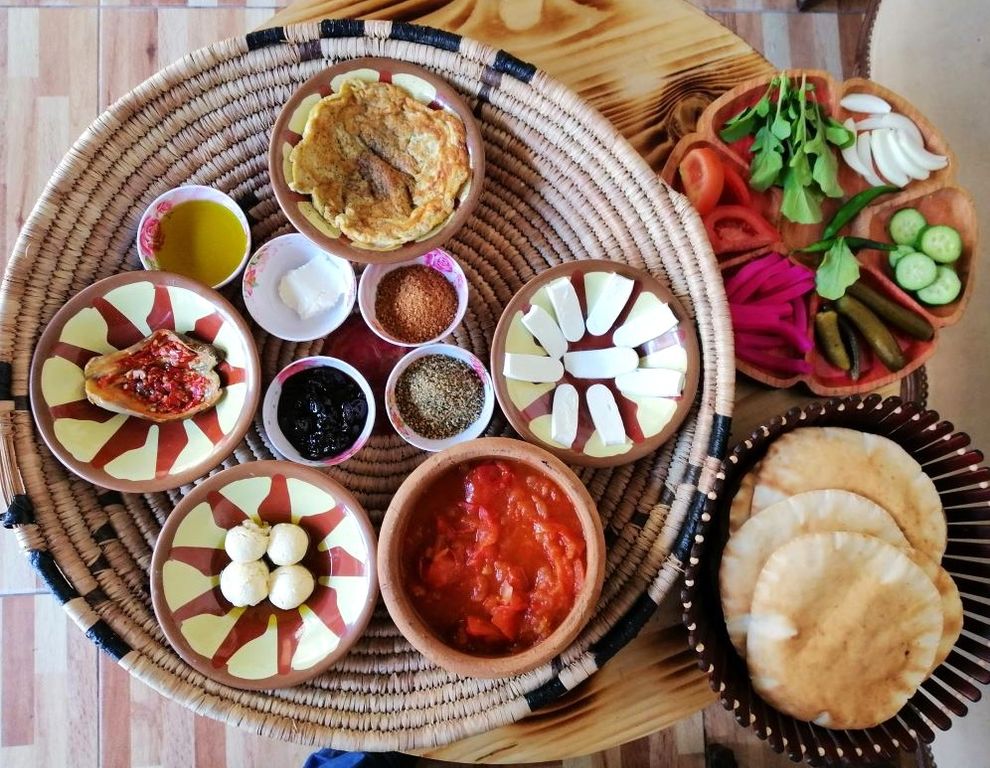 I mezze, di origine libanese, sono antipasti caldi e freddi molto vari, serviti in tavola in piatti diversi: fra questi l’humus, una purea di ceci all’olio d’oliva, il tabuleh, insalata a base di bulgur, pomodori, menta e prezzemolo, condita con olio e limone, foul, fave insaporite con aglio, olio e limone, koubé, polpette di carne con bulgur, labneh, formaggio bianco, baba ghanouge, caviale di melanzane. Se a quest’ultimo viene aggiunta della purea di sesamo, il piatto prende il nome di muttabal. Deliziose le falafel, polpette fritte di ceci dal sapore speziato, di solito servite con delle insalate. I samboussek sono paste salate triangolari, farcite con spinaci, formaggio o patate, mentre si possono definire quasi una pizza locale i manahes , gallette di pane piuttosto spesse all’olio d’oliva e zaa’tar.