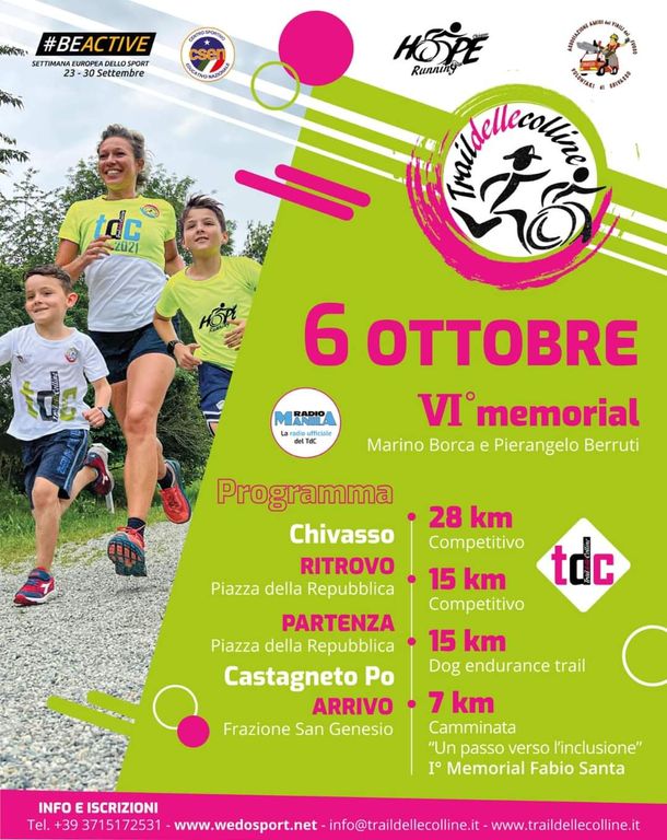 Tutte le info relative al 6° Trail delle Colline le potete trovare a questi link: