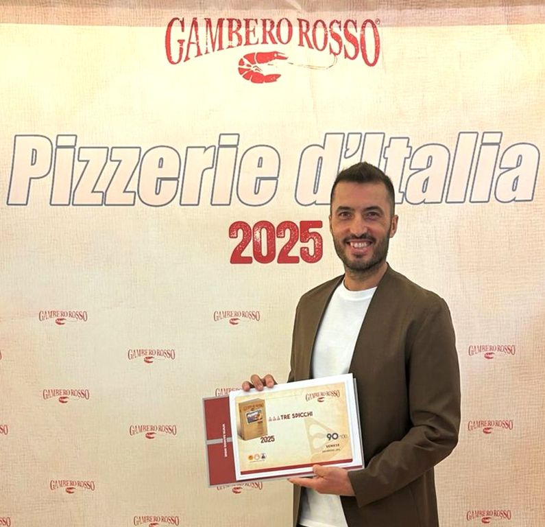 Giovanni Senese, della Pizzeria Giovanni Senese a Sanremo, dopo essere entrato lo scorso anno nella Guida Pizzerie d’Italia del Gambero Rosso direttamente con Due Spicchi e portandosi a casa il premio Pizza dell’anno, torna quest’anno a casa dopo la presentazione della nuova edizione 2025 della Guida con il massimo riconoscimento, i Tre Spicchi, con un punteggio di 90.
