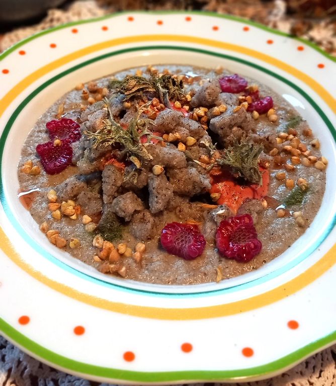 “Gli ingredienti di questo piatto – ha raccontato un’emozionata chef Garini – includono un cacciatorino nostrano della macelleria Pagani, ricotta fresca e formaggio Guali dell’azienda agricola Agrimor di Berzo Inferiore, oltre al pane fatto in casa preparato con farine del territorio fornite dal Molino Tognali e dall’azienda La Perla Nera, che utilizza anche mais nero spinoso. Inoltre, ho utilizzato erbe selvatiche raccolte nei nostri prati, come silene e borraggine, e verdure dal nostro orto biodinamico, come la verza e l’erba costa. Questi ingredienti si uniscono per formare una polpettina tenerissima, servita su un letto di passata di pomodoro a lunga cottura, anch'essa di nostra produzione, decorata con olio evo dell’azienda Le Chioste e un’emulsione di basilico biologico del nostro orto. È un piatto umile, rielaborato per accentuarne il sapore e l’appeal, con l’intento di valorizzare i prodotti del territorio”.
