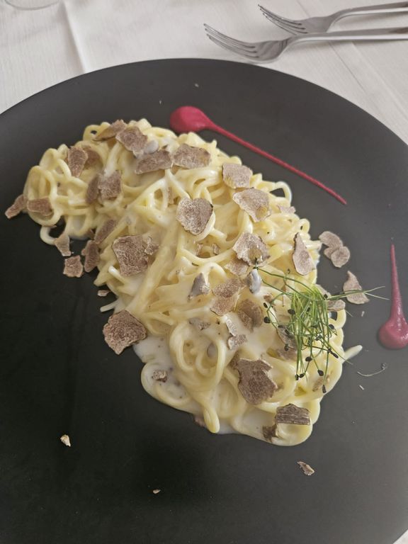 Tra i primi - fantasiosi, golosi e tradizionali –particolarmente apprezzati sono il tagliolino con caciocavallo molisano, accompagnato da una lamellata di tartufo bianco, e gli agnolotti al tartufo e pancetta. Infine, fra i secondi, dove la selvaggina quasi la fa da padrona, spiccano anche piatti a base di carne bianca: nello specifico e attualmente presente in carta, una deliziosa suprema di pollo “non tradizionale”, cotta alla piastra e accompagnata da una salsa ristretta al tartufo che, volendo, si può far accompagnare a un deciso purè al tartufo. Piatti, dunque, che raccontano la storia di questo scrigno di terra incontaminato, dove i colori e i sapori si mescolano a un’esperienza gastronomica unica.