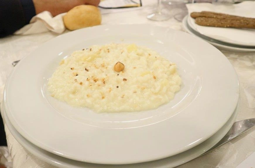 Risotto Carnaroli con mela verde, formaggella e nocciole