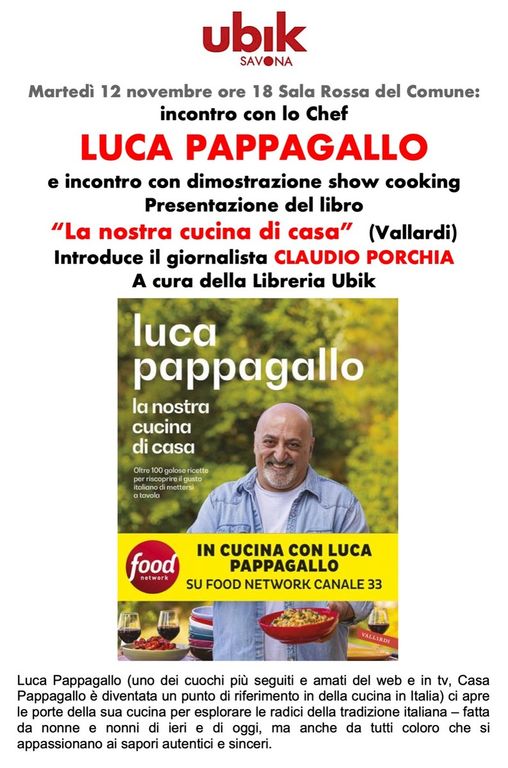 Martedì 12 novembre, alle ore 18:00, presso la Sala Rossa del Comune, avrà luogo un evento imperdibile per tutti gli appassionati di cucina e gastronomia. Sarà l’occasione perfetta per incontrare il celebre Chef Luca Pappagallo, noto per la sua straordinaria capacità di reinterpretare i classici della tradizione culinaria italiana. In programma la presentazione del libro “La nostra cucina di casa. Oltre 100 golose ricette per riscoprire il gusto italiano di mettersi a tavola”, pubblicato dalla casa editrice Vallardi. Questo volume rappresenta un vero e proprio viaggio attraverso le ricette più amate della cucina italiana, offrendo spunti e idee per riscoprire il piacere di cucinare e condividere i pasti con amici e familiari. Durante l'incontro, Chef Pappagallo si diletterà in una dimostrazione pratica di show cooking, dove condividerà con il pubblico alcuni dei suoi segreti culinari e proporrà piatti che evocano i sapori autentici della nostra tradizione gastronomica.