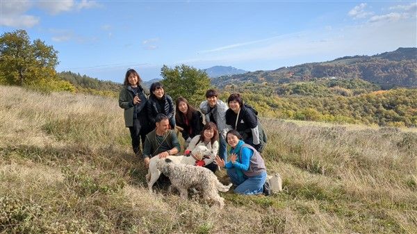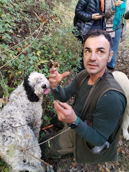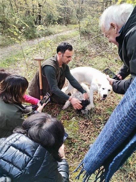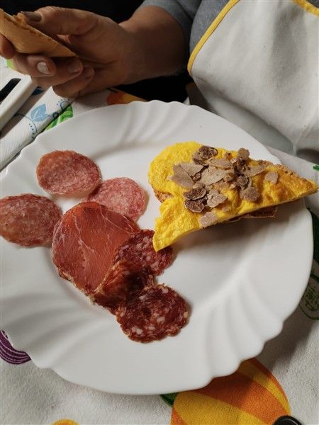 Accompagnate da Emanuele, un esperto "cacciatore di tartufi", le cuoche hanno imparato a riconoscere i segni della terra e a seguire i cani specializzati nella ricerca di questo prezioso tubero. L'emozione di trovare tartufi bianchi e neri, con l’aroma inebriante e il sapore intenso — ha colpito profondamente le cuoche, aprendo loro un nuovo mondo dei sapori. E dopo la raccolta dei preziosi funghi il gusto di una “grattata” su piatti fatti in casa dalla mamma Anna nel rispetto della tradizione.