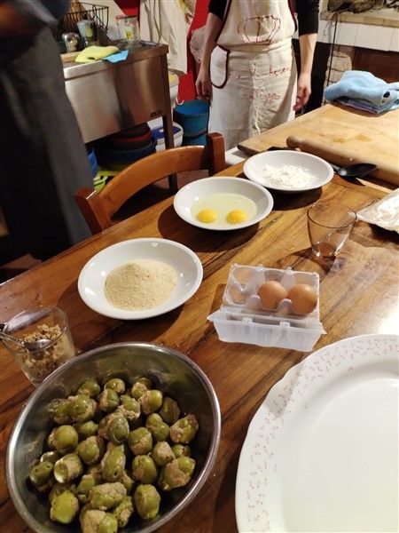 Non poteva mancare una lezione sulla preparazione delle famose olive all’ascolana. Dalla selezione delle olive alla farcitura, dalla panatura alla frittura, le cuoche hanno scoperto come questo antipasto sia parte integrante della gastronomia marchigiana, un autentico simbolo di convivialità e festa.