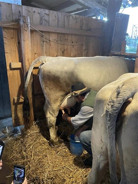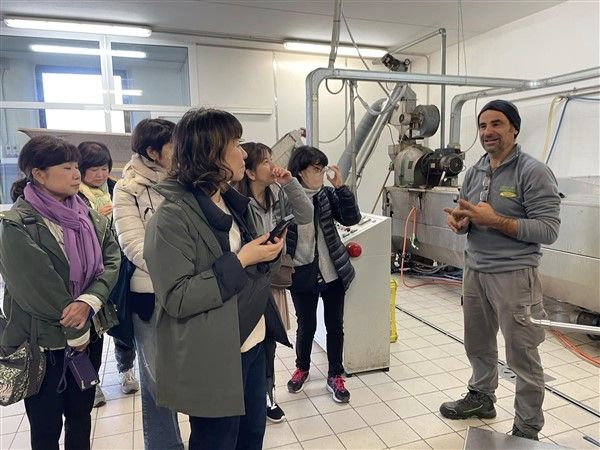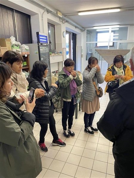 Infine, l’esperienza si è conclusa con la mungitura delle mucche e la preparazione di formaggi freschi, un'altra tradizione marchigiana che ha affascinato le cuoche giapponesi. Sperimentare il processo di creazione del formaggio, dall'arrivo del latte alla sua trasformazione in caciotta, ha aggiunto un’ulteriore dimensione al loro viaggio.