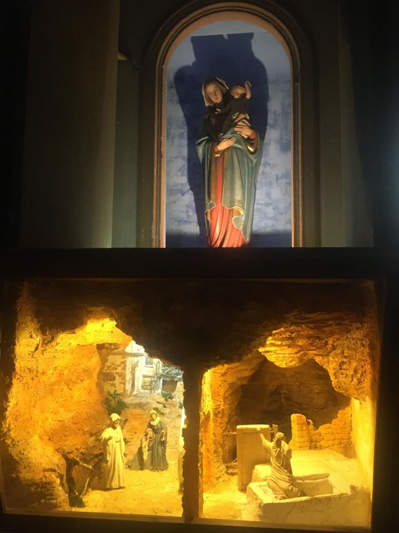 È un’esperienza davvero unica, particolarmente significativa nel periodo natalizio (anche se il presepe, con varie modalità, è visitabile tutto l’anno), entrare nella chiesa e percorrerne la stretta navata verso l’altare, avendo ai due lati le luminose scene, che non solo rappresentano il toccante momento della Natività di Cristo, ma ne ripercorrono la vita in maniera suggestiva e molto realistica.