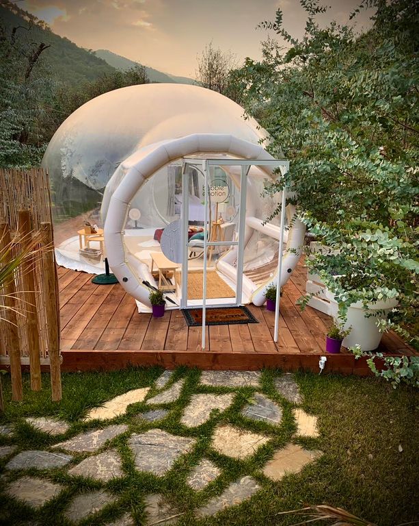Una delle esperienze più particolari è quella di dormire sotto le stelle nella Bubble Suite Antares, un’avventura unica immersa nel verde, dove si può godere dello spettacolo del cielo notturno.