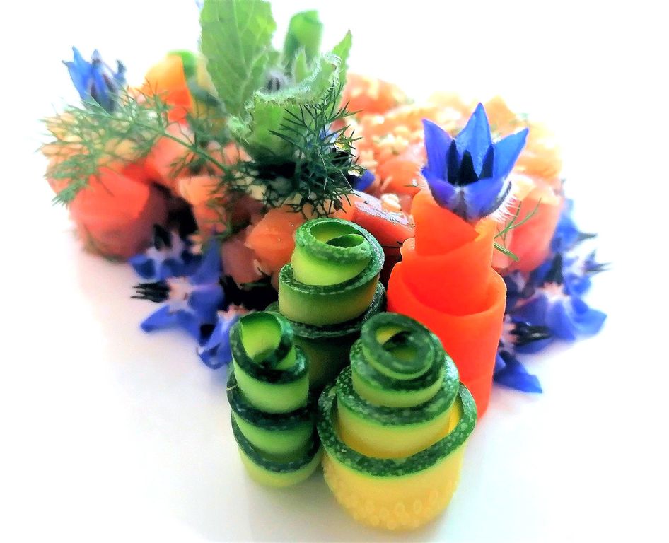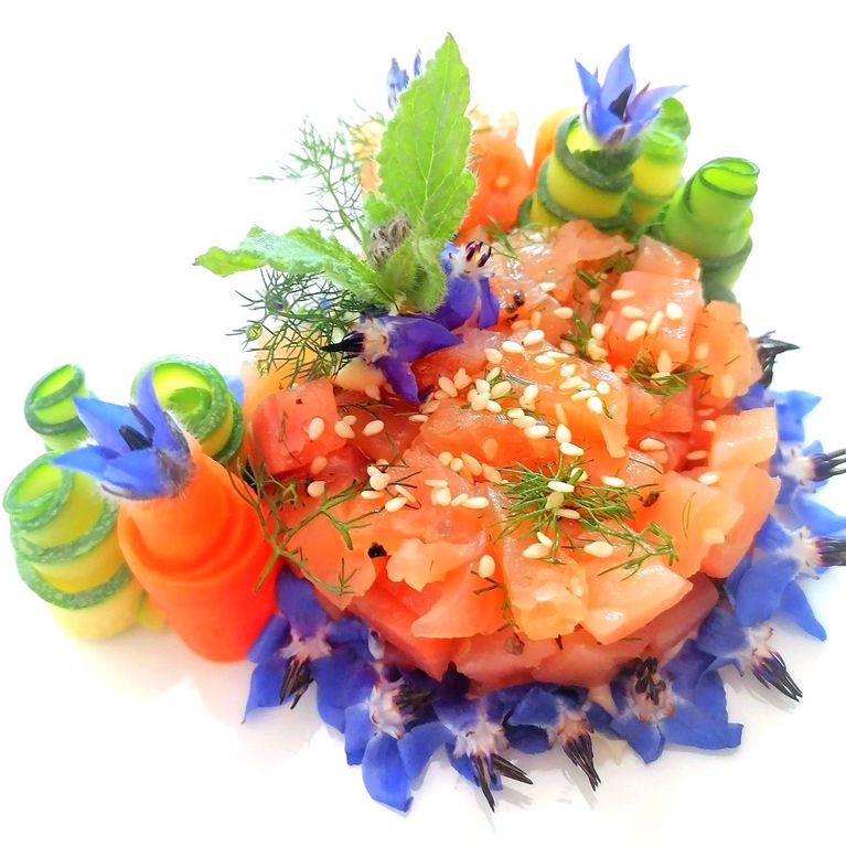 Ricetta:: Tartare di salmone marinato ai fiori di agrumi.