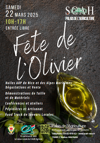 La Société Centrale d'Agriculture (SCAH) organizza a Nizza, sabato 22 marzo 2025 dalle ore 10 alle ore 17, la Fête de l'Olivier, un evento straordinario dedicato a uno dei simboli più emblematici del Mediterraneo.