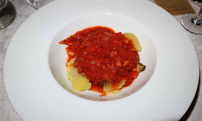 Il primo piatto, Umbricelli con ragù di oca e tartufo, ha stupito per la texture della pasta artigianale unita a un condimento ricco e aromatico, fondendo i gusti della terra con quelli del bosco.