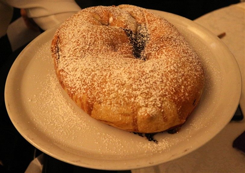 Infine, la cena si è chiusa in dolcezza con la Rocciata, un dessert a base di pasta sfoglia farcita con mele e noci, che ha deliziato il palato e concluso la serata in modo perfetto.