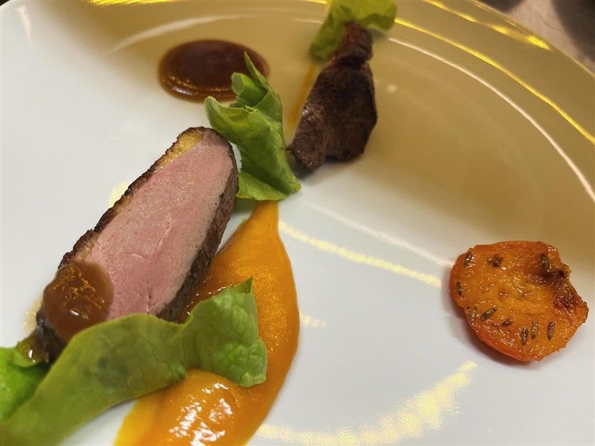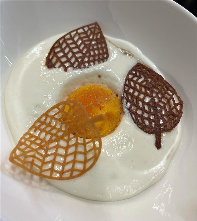 Alla carta altri piatti interessanti come gli gnocchi di patate con spugnole e piantaggine e gli agnolotti del plin ai tre arrosti con il loro sugo. Nei secondi anche un piatto di pesce come la Leccia, simile alla Ricciola, pescata nel Mediterraneo, servito con coulis di mandarino amaro, barba di frate e belga brasata.