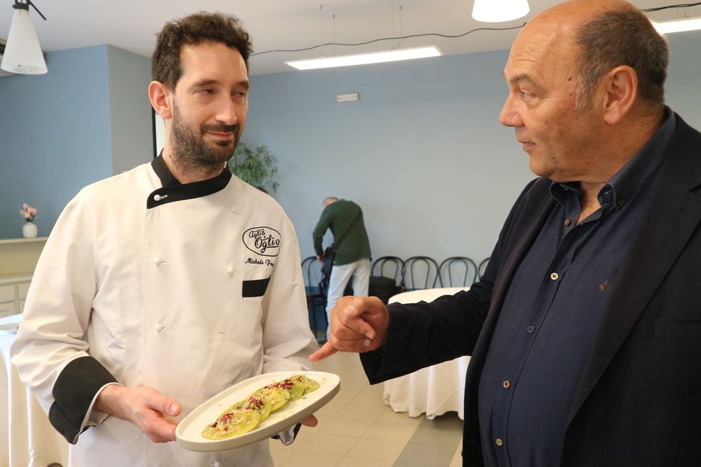 per Dispensa Franciacorta – Adro (BS) : per la capacità di reinterpretare la tradizione in chiave contemporanea con il Raviolo Fiorito, un piatto che unisce tecnica e valorizzazione intelligente dei fiori eduli e che grazie all’abbinamento Bocca di Leone e Nocciola esprime equilibrio, eleganza e una profonda conoscenza delle potenzialità aromatiche dei fiori, trasformandoli in protagonisti del gusto e non semplici comparse. Un piatto che grazie alla Bocca di Leone e la Nocciola esprime equilibrio, eleganza e una profonda conoscenza delle potenzialità aromatiche dei fiori, trasformandoli in protagonisti del gusto e non semplici comparse;